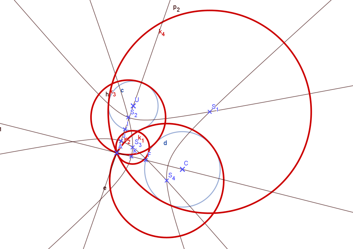 Sestrojíme kružnice, které mají středy v průsečících našich množin (hyperbol) a procházejí bodem A.